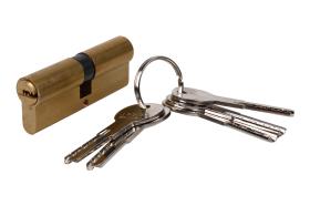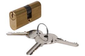 Cilindro seguridad Doble embrague leva larga latón. Se suministra 5 llaves. Permiten tener insertada una llave por cada lado y que ambas funcionen perfectamente. Color Latón