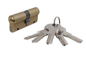 Cilindro seguridad Doble embrague leva larga latón. Se suministra 5 llaves. Permiten tener insertada una llave por cada lado y que ambas funcionen perfectamente. Color Latón