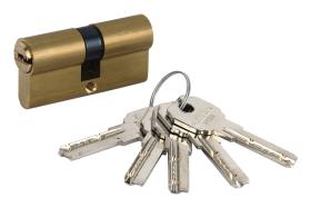 Cilindro Seguridad Llave Normal Leva Larga. Fabricado en acero y latón. S-3111 EN1303:2005.LLAVE 19D.5 pitones de latón.Color Latón y Niquel.