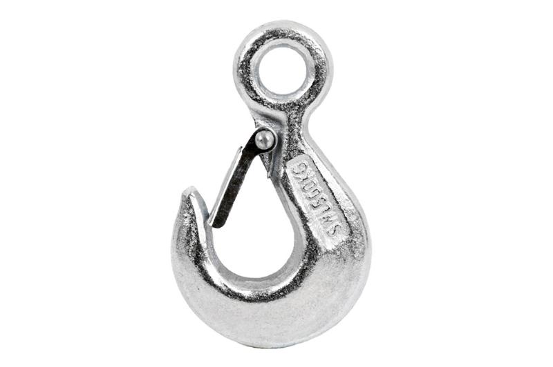 Gancho DIN-689 ideal para la elevación de cargas desde 250 kg hasta 2.500 kg. Incorpora gatillo-seguro, para aumentar la seguridad del gancho y evitar el retorno de la carga.