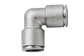 Empalmes metálicos acodados recuperables de conexión instantánea, adecuados para instalaciones de aire comprimido y circuito de frenos de V.I. Cuerpo totalmente metálico. Fácil visión del calibre del