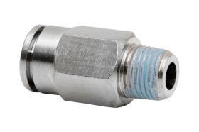Racores rectos roscados metálicos recuperables de conexión instantánea para tubos desde 4mm hasta 8mm de exterior. Adecuados para instalaciones de aire comprimido. Cuerpo totalmente metálico con fácil